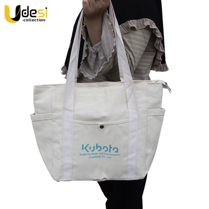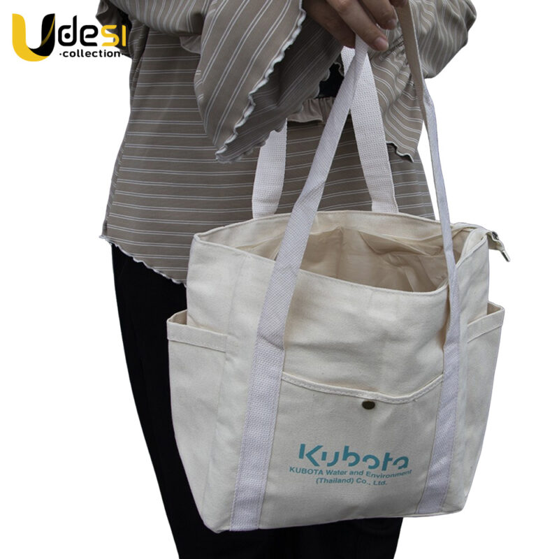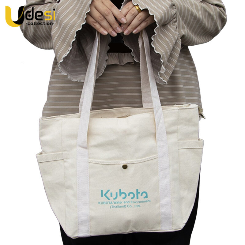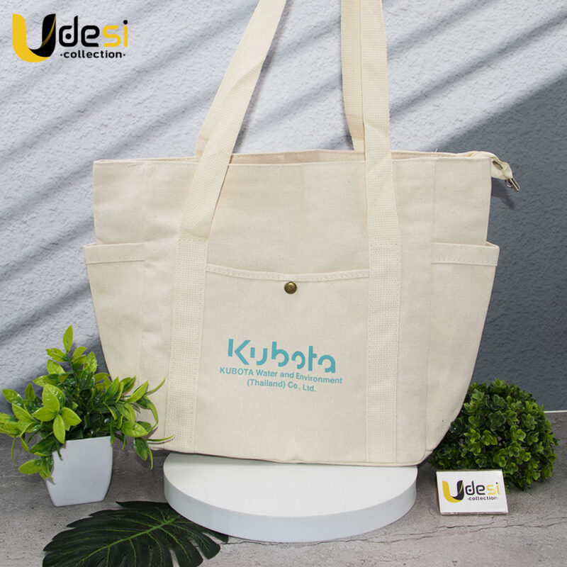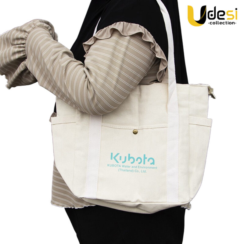 ผลงานสกรีนโลโก้บนสินค้า ผลงานของพรีเมี่ยม [MN0004] – กระเป๋าผ้าแคนวาส สะพายไหล่ ขนาด 38*26*12 ซม. (KUBOTA WATER AND ENVIRONMENT (THAILAND) CO., LTD.) Last Updated on พฤศจิกายน 29, 2025 by