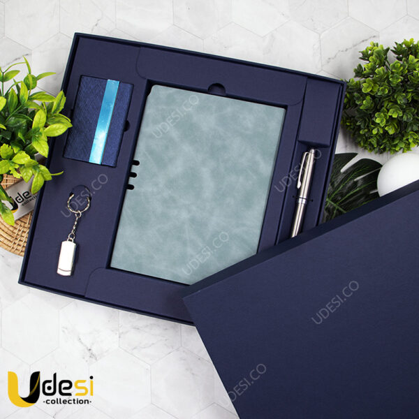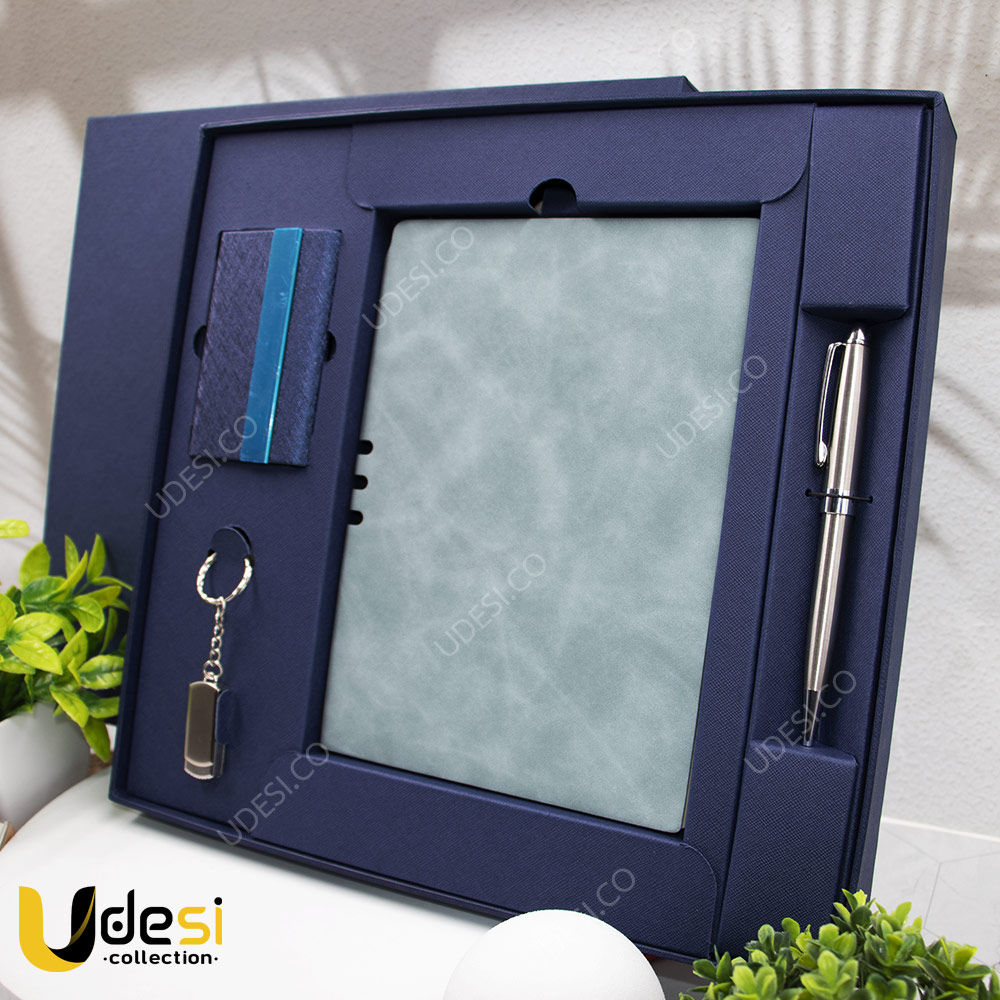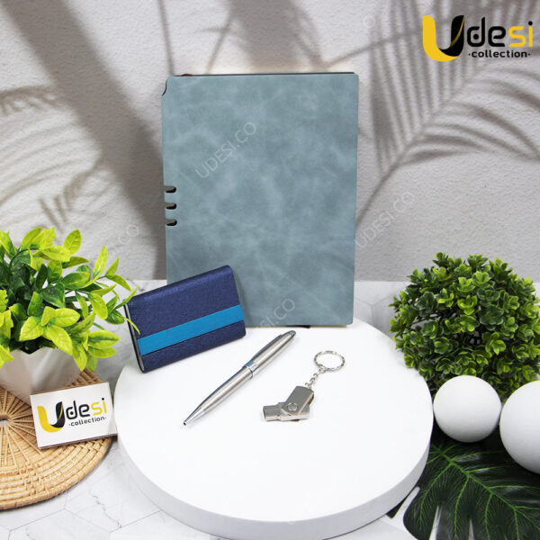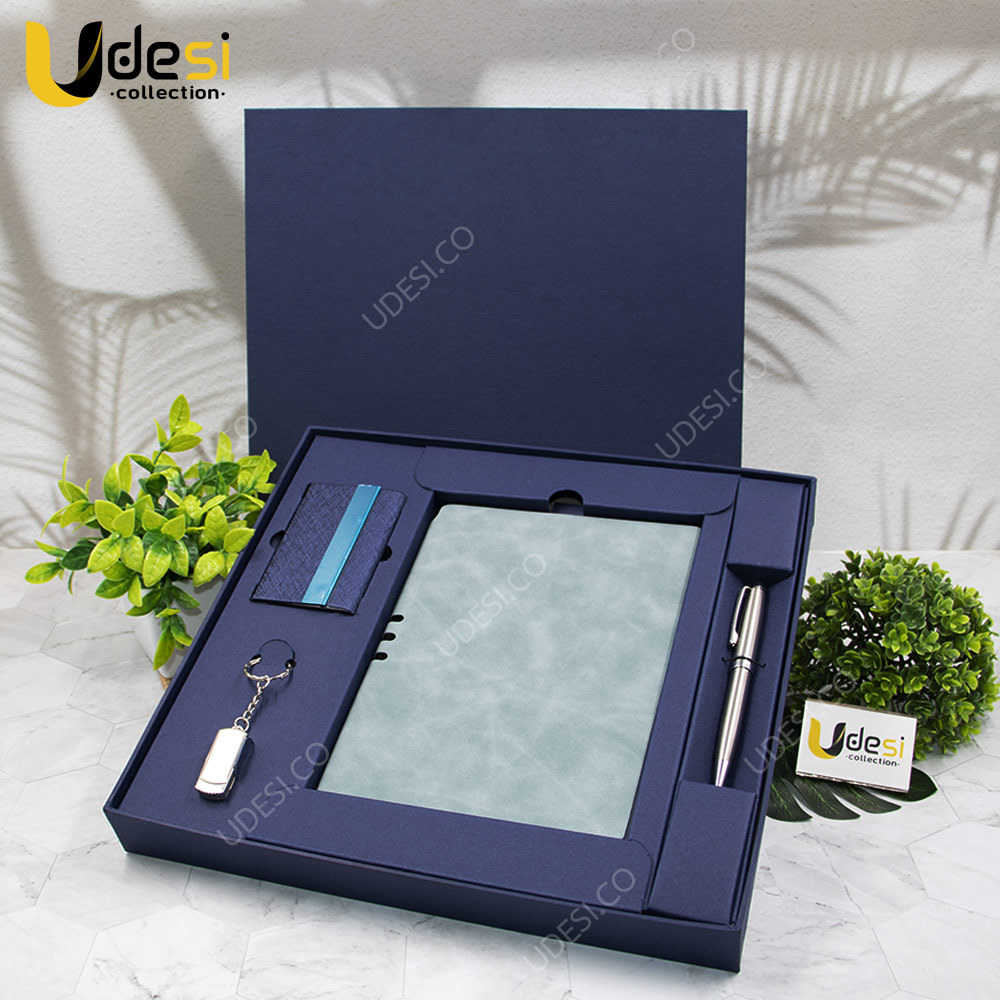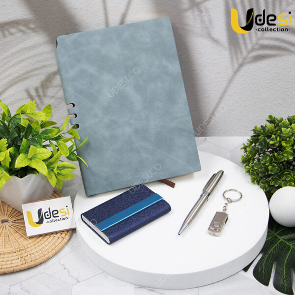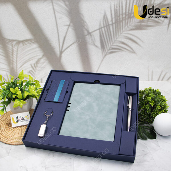 Udesi Collection – Gift Set สมุดโน๊ต A5 ปกหนังสีเรียบหรู + ปากกาลูกลื่น 1.0 mm + แฟลชไดร์ฟ USB มินิมอล 8G + กล่องใส่นามบัตรแบบพกพา