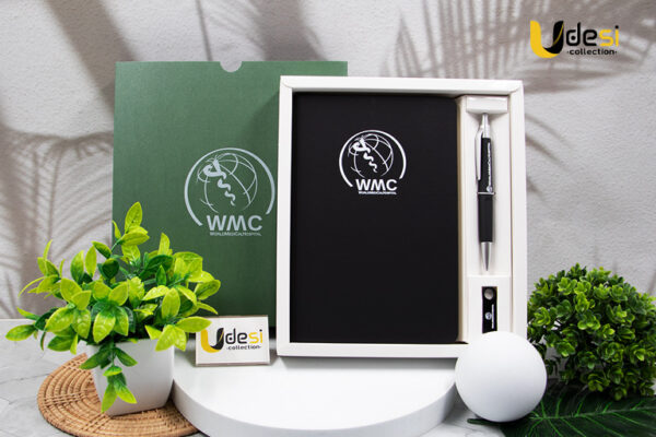 Gift Set สมุดโน๊ตA5ปกแข็ง PU + ปากกาลูกลื่นแบบกด หมึกดำ 1.0 มม. + แฟลชไดร์ฟโลหะ USB2.0 ความจุ 8G